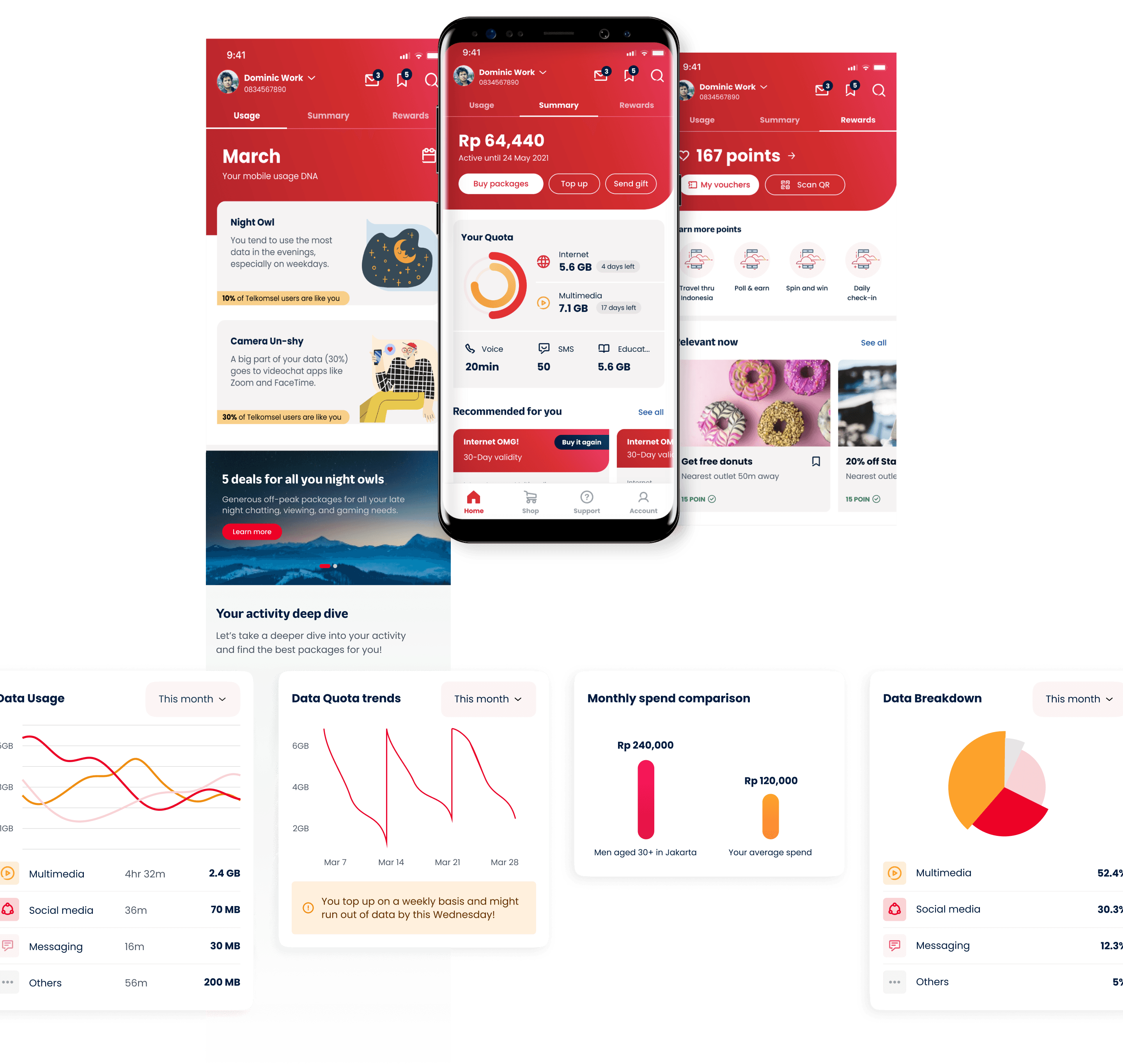 The 'Usage' page is designed to provide insights into data consumption patterns. It tells a personalized story by analyzing data usage behaviour, linking relevant packages, and offering data visualisations for deeper exploration.