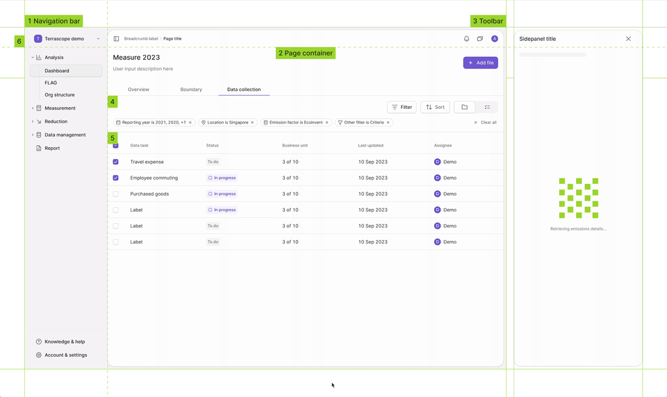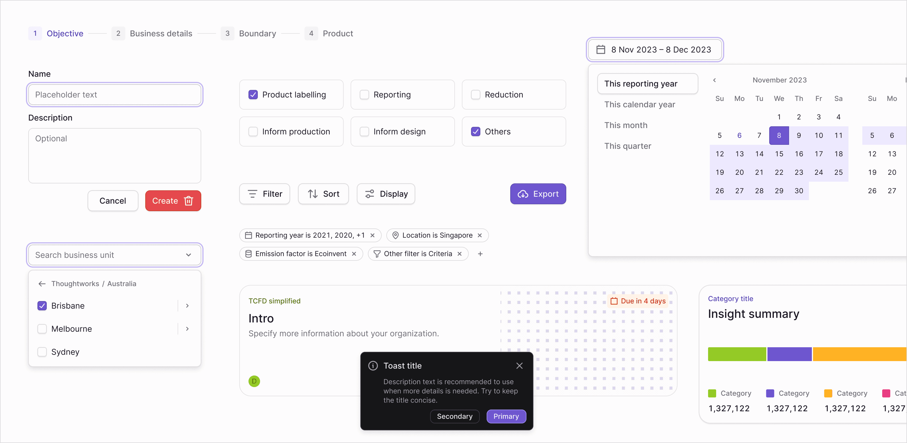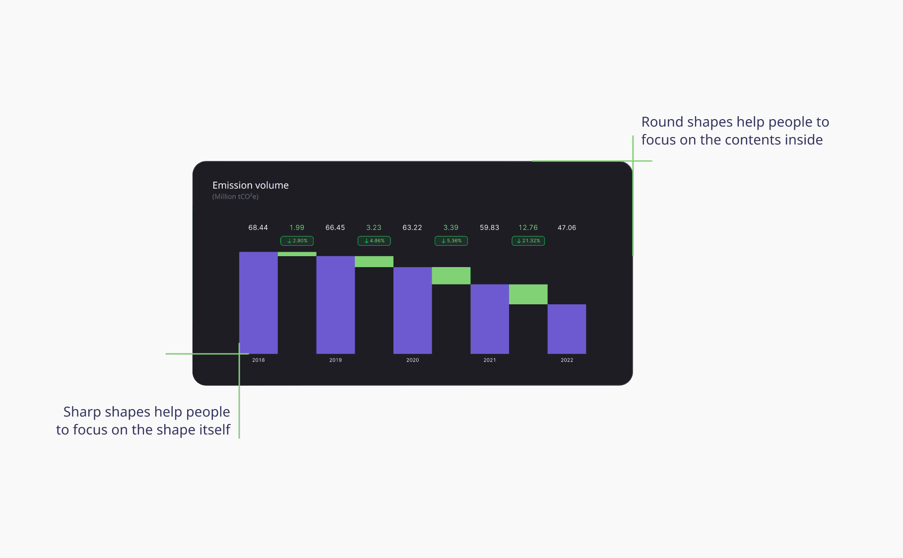 The design language system elements, such as radius and colours, were meticulously defined to enhance usability. For instance, larger radius were applied to content-focused components to aid readability, while sharper edges were used for elements like data visualizations to emphasize their structure. Colours were selected from the Radix palette, ensuring accessibility, scalability, and seamless dark mode optimization, all in line with Web Content Accessibility Guidelines (WCAG).